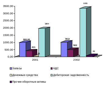 Анализируя изменение структуры размещения оборотных средств, можно сделать вывод, что в отчетном году доля производственных запасов снизилась на 11,3%, с 41,7 до 30,4%, доля сырья и материалов также снизилась на 2,5%, малоценных и быстроизнашивающихся материалов на 0,4%, незавершенного производства на 6,3%, а также налог на добавленную стоимость на 2,1%. Но зато доля дебиторской задолженности увеличилась на 3,9%, с 58 до 67,9%.