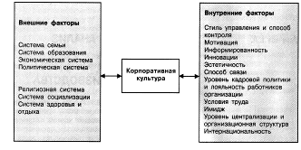 Корпоративная культура создаётся или формируется с течением времени под влиянием внутренних и внешних факторов (см. рис.).