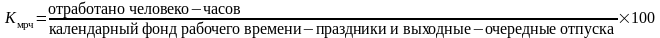 коэффициент использования табельного фонда времени: