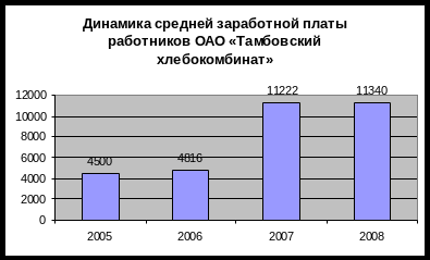 Таблица 3. Динамика средней заработной платы работников ОАО «Тамбовский хлебокомбинат»