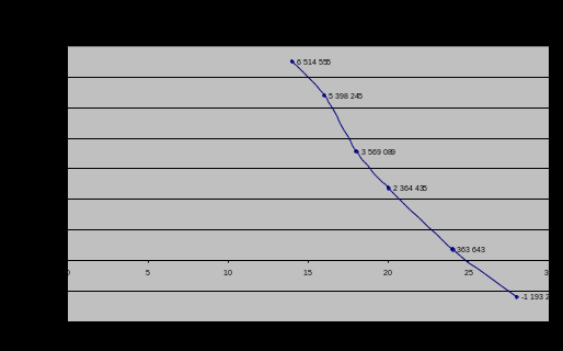 Постепенно увеличивая норму процента получили, что при 28% чистая текущая стоимость имеет отрицательное значение (Диаграмма 1).