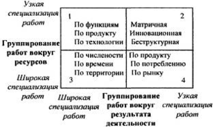 Рис. 2. Группирование работ и типы департаментизации