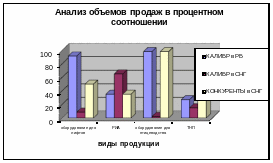 Рис. 1. Диаграмма анализа объемов продаж завода «Калибр» и конкурентов на рынках РБ и СНГ.