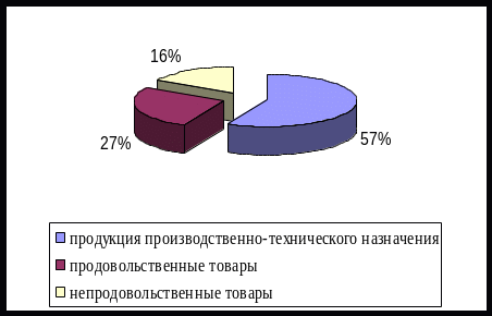 Товарная структура оптового товарооборота представлена продукцией производственно-технического назначения, продовольственными и непродовольственными товарами. Их доля составила 57%, 27% и 16% соответственно.