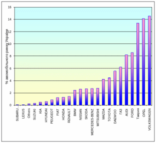 Рис. 9 Діаграма попиту машин на ринку України за 2000-2001 роки.
