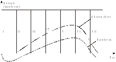 Даний графік являє собою більш розширену модель життєвого циклу товару. Різні автори виділяють різні частини життєвого циклу, але в загальному їх класифікацію можна звести до чотирьох елементів: впровадження, зростання, зрілість і спад.
