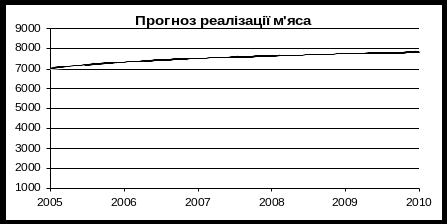 За прогнозними даними можна сказати що обсяги реалізації стабільно зростатимуть, і залежатимуть лише від репутації виробника і наявності сировини. Враховуючи тенденції до скорочення в Україні загального поголів’я м’ясних порід тварин потрібно вирішити сировинну проблему для підприємствами. Можливим рішенням може стати відкриття в майбутньому власного сільськогосподарського підприємства, яке працюватиме лише на потреби комбінату.