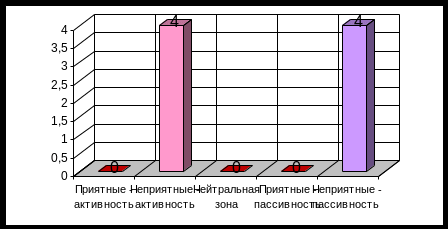 4 зона – преобладание приятных эмоциональных состояний, умиротворение, пассивная созидательность, замедленность в коллективных реакциях, отсутствие напряженности, проявление равнодушия во взаимоотношениях, «стоячее болото».
