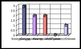 На рисунке 2.8, отображены количественные результаты характерной тактики поведения участников исследования в конфликтных ситуациях.