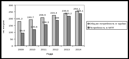 Рисунок 5. Тенденция спроса на трубы и доля МПТ в общем объеме труб.