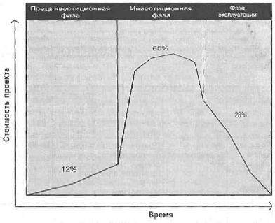 Рис. 2. Распределение стоимости проекта в течение его жизненного цикла