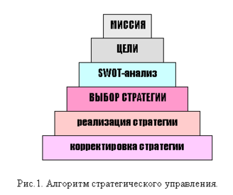 Таким образом, упрощенно можно представить следующий алгоритм процесса стратегического управления: