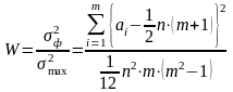 - дисперсія підсумкових (впорядкованих) оцінок за умови, що думки експертів повністю збігаються;