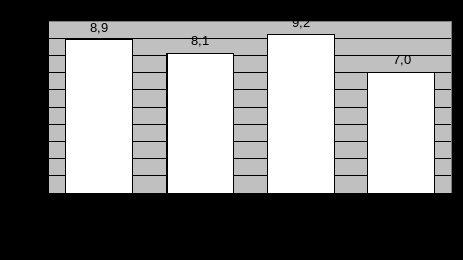 На рисунке 10 наглядно видно, что первостепенными факторами при принятии решения о покупке того или иного продукта питания для покупателя супермаркета «Магнит» являются, во-первых, качество продукта (9,2 балла) и во-вторых, упаковка товара (8,9 балла). Взаимосвязь этих критериев очевидна, так как дизайн упаковки, ее эстетический вид, ее удобство для потребителя ассоциируются у покупателя с качеством самого товара.