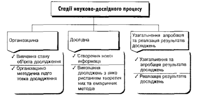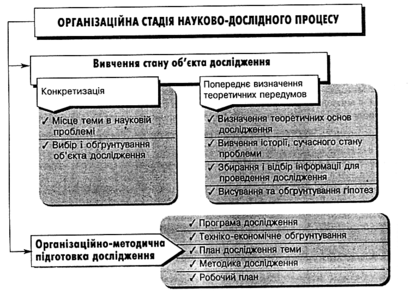 Рис.3. Організаційна стадія науково-дослідного процесу