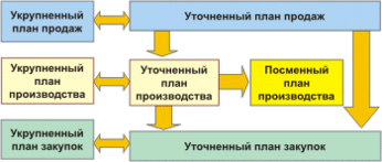 В свою очередь, планы закупок строятся на основе планов производства. Укрупненный план закупок также не может быть получен непосредственно на основе укрупненного плана производства. Сначала на основе уточненного плана производства должен быть сформирован уточненный план закупок, и лишь на его основе может быть сформирован укрупненный план закупок.