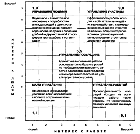 Рис 3. Управленческая сетка Блейка и Моутон