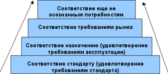 В японских системах впервые была использована четырехуровневая иерархия качества, в которой угадывается основной принцип концепции ТQМ — ориентации на удовлетворение текущих и потенциальных запросов потребителей. Структура на рисунке 6.