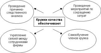 Кружки качества являются методом обучения и поощрения персонала, интересы которого, в свою очередь, учитываются в процессе деятельности организации. Используя простые статистические инструменты, люди работают в группах, обсуждая, анализируя и решая различные проблемы, нацеленные чаще всего на стоимость, безопасность и продуктивность. Также их работой является подготовка предложений по усовершенствованию продукции или услуг компании. Основные результаты деятельности кружков качества представлены на рисунке 8.