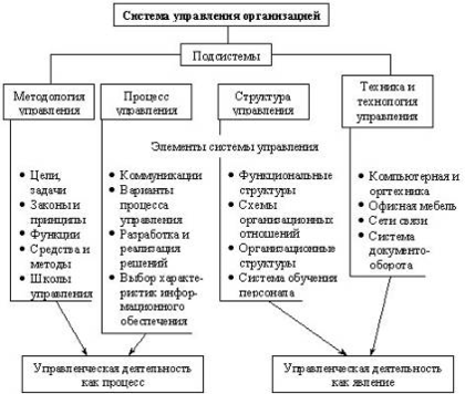 Методология и процесс управления характеризуют управленческую деятельность как процесс, а структура и техника управления - как явление. Все элементы, входящие в СУ, также должны быть профессионально организованы для эффективной работы компании в целом.