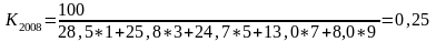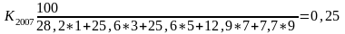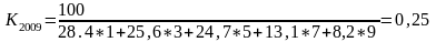 Сделав расчет коэффициента специализации в динамике, то есть за 2007, 2008, 2009 гг., видно, что он за данный период не изменился и составляет 0,25.