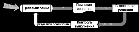 | Целевыявление | Выработка и принятие решения | Организация выполнения решения | Контроль реализации решения | |