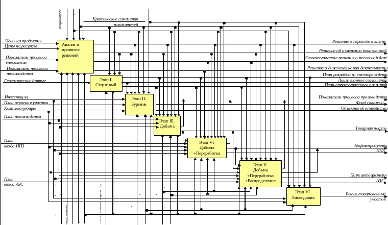 Этап VI. Данный этап представляет собой заключительную стадию жизненного цикла принятия решений о стратегическом развитии нефтяной компании. Его реализация требует весьма значительных инвестиционных ресурсов и осуществляется с участием бюджетных средств.
