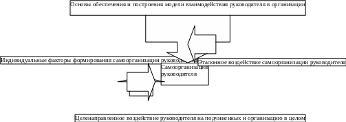 Осуществляя руководство в организации, он широко и разнообразно использует этот подход, ставя себя на место того или иного из своих подчиненных, проецируя, таким образом, собственную самоорганизацию на их поведение. В конечном счете, это приводит к построению определенной модели формирования и взаимодействия самоорганизации руководителя у