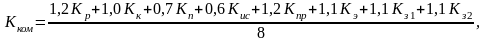 | Кр | Кк | Кп | Кис | Кпр | Кэ | Кз1 | Кз2 | 1,2 Кр | 1,0 Кк | 0,7 Кп | 0,6 Кис | 1,2 Кпр | 1,1 Кэ | 1,1 Кз1 | 1,1 Кз2 | ||