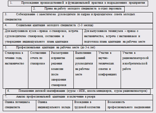 В этой связи кардинального улучшения требует процесс адаптации молодых специалистов, необходима разработка сценариев и стандарта их адаптации.
