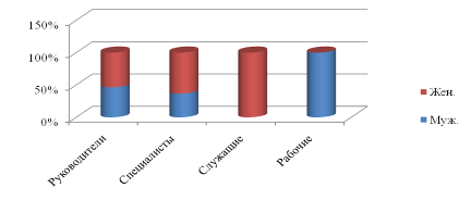 Рис.6. Распределение работников предприятия по категориям по половому принадлежности, %