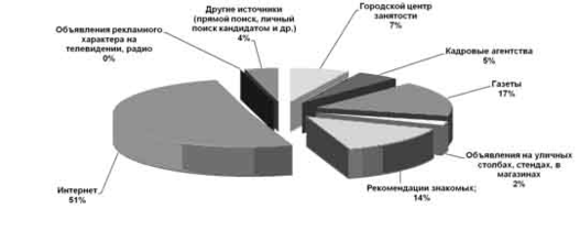 Анализ источников привлечения персонала показал, самым информативным источником в плане привлечения персонала стал Интернет (рис.8) 51% (1039 чел.).
