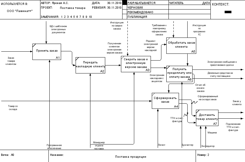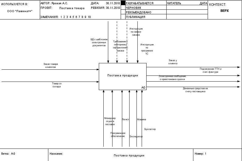 Бизнес-процесс поставки продукции содержит следующую последовательность действий: