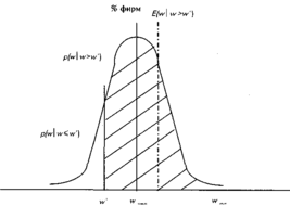 На рис. 10.2 показана кривая вероятного распределения предлагаемой заработной платы. Если бы работник знал, какая фирма предложит максимальную заработную плату (wmax), он мог бы сразу устроиться на работу именно в эту фирму, при отсутствии такой информации работник вынужден прибегнуть к процессу поиска, предлагая свой труд фирмам, имеющим вакансии, по принципу случайной выборки, сравнивая предлагаемые уровни заработной платы и выбирая приемлемую для него.