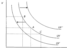 Увеличение s (вероятности потерять работу) и mm сдвигает кривую UV вправо, а увеличение j сдвигает кривую UV влево.