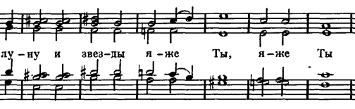Начальная строфа определяет общий характер хорового концерта: возвышенный, хвалебный гимн.