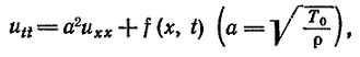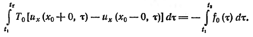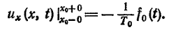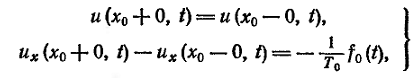 второе из которых выражает непрерывность струны, второе определяет величину излома струны в точке x0, зависящую от f0(t) и натяжения T0.