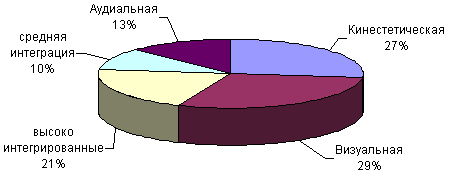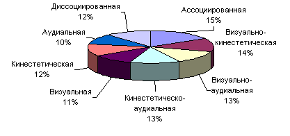 Рис. 1.1. Распределение людей по группам в зависимости от ключевой репрезентативной системы