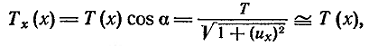 Найдем проекции натяжения на оси x и u (обозначим их Tx и Tu):