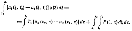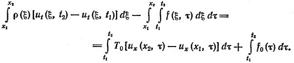 Поскольку скорости точек струны ограничены, то при x1→x0 и x2→x0 интегралы в левой части этого равенства стремятся к нулю, и равенство (3) принимает вид