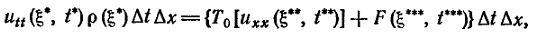 в точках x1 и x2 и внешней силы, которую будем считать непрерывно распределенной с плотностью (нагрузкой) F(x, t), рассчитанной на единицу длины. В результате получим уравнение поперечных колебаний элемента струны в интегральной форме