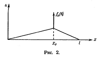 Если в точке x0(x1<x0<x2) приложена сосредоточенная сила f0(t) (рис. 2), то уравнение (3) запишется так: