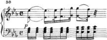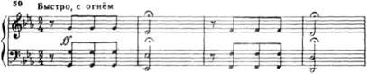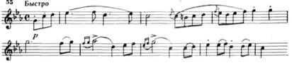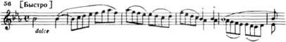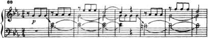 Второй раз та же мелодия изложена в верхнем регистре. Теперь ее звучание напоминает голоса скрипок.