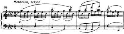 Им отвечает нежная, певучая, с оттенком мольбы мелодия, звучащая на фоне спокойных аккордов: