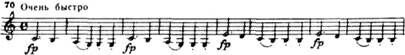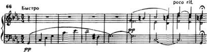 Контраст между темами постепенно сглаживается. Он совсем исчезает в коде, где появляется как бы новая мелодия, объединившая в себе характерные черты обеих тем: