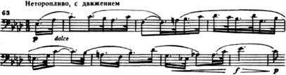 Вторая часть – Andante con moto (неторопливо, с движением), ля-бемоль мажор. Подобно медленной части «Патетической сонаты», вторая часть пятой симфонии дает передышку, борьба как бы временно прекращается. Правда, и здесь ненадолго появляется характерный ритм основной темы симфонии. Но угроза ее звучит очень глухо. Вторая часть представляет собою вариации на две темы или двойные вариации. С подобным строением мы встречались в симфонии Гайдна и также во второй части.