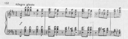 Нарастание достигает предельной силы: упорны, настойчивы удары аккордов tutti; основа движения всей музыки – судорожный ритм