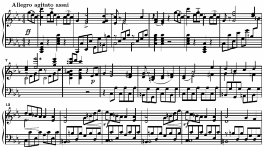 Оркестровый аккомпанемент, опять же не такой восхитительный как у Бетховена, в равной степени замечательно построен, с филигранными фортепианными вплетениями между вспышками тутти.