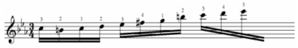 2)В быстрых пальцевых последовательностях нужно стремиться к тому, чтобы один и тот же палец употреблялся значительно реже.
