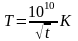 Подробный анализ показывает, что температура вещества Т понижалась во времени в соответствии с простым соотношением формула (1) :